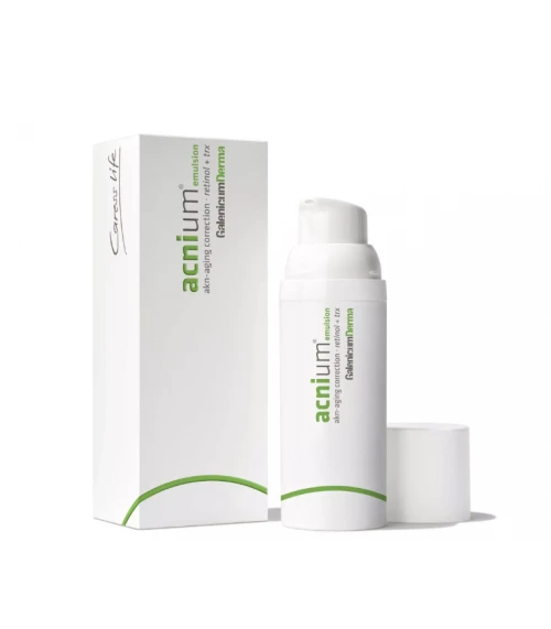 Acnium Emulsion Akn-Aging Correction Retinol TRX 50 ml es un innovador producto diseñado para combatir los signos del envejecimiento y mejorar el aspecto de la piel propensa al acné. Esta emulsión actúa de manera efectiva gracias a su contenido de retinol y otros ingredientes activos que trabajan en sinergia para suavizar las arrugas, mejorar la textura de la piel y disminuir la aparición de imperfecciones.