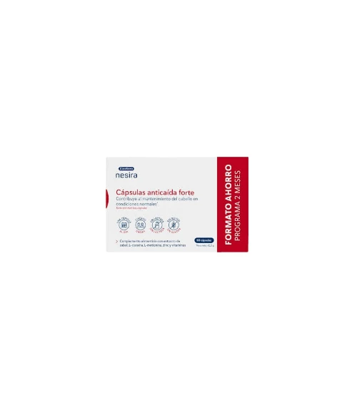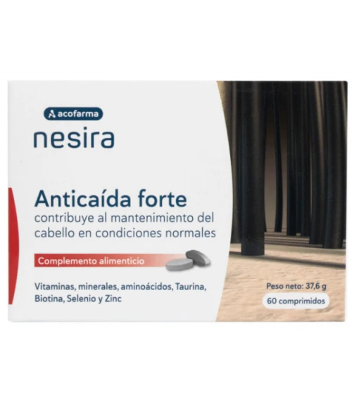 **Acofarma Nesira Anticaída Forte 60 Cápsulas** es un complemento alimenticio diseñado para combatir la caída del cabello y fortalecer su estructura desde la raíz. Está cuidadosamente desarrollado para aquellos que buscan mantener una cabellera saludable, brindando nutrientes esenciales que apoyan el crecimiento capilar y revitalizan el cuero cabelludo. ¿Quieres lucir un cabello más denso y resistente?