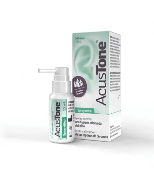 Acustone Spray Otico 1 Envase 15 ml 300 Dosis es un producto diseñado específicamente para la higiene auricular. Utiliza una suave solución de aceites esenciales y vitamina E que ayudan a eliminar el exceso de cerumen y las impurezas de los conductos auditivos, promoviendo así una limpieza eficaz y segura. Este spray es ideal para aquellas personas que buscan mantener la salud de sus oídos de manera sencilla y eficaz.