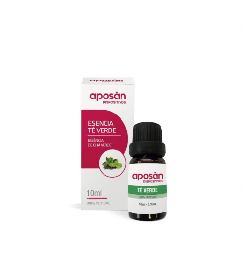 Aposán Esencia Té Verde 10 ml se presenta en un práctico frasco gotero, fácil de transportar y de dosificar. No apto para consumo.