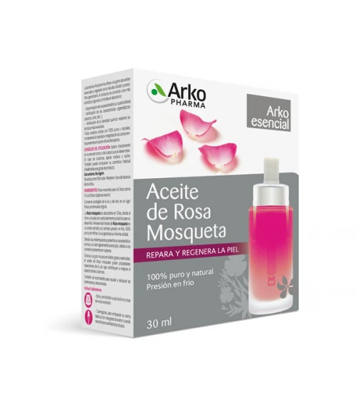 El aceite de rosa mosqueta contribuye a atenuar las cicatrices y arrugas, mejorando la elasticidad de la piel. Es muy rico en ácidos grasos esenciales, con unas excelentes propiedades reparadoras de los epitelios que forman la piel. Arkoesencial Aceite de Rosa Mosqueta 30 ml se utiliza para minimizar cicatrices superficiales (quemaduras, estrías, cirugías, acné) así como la arrugas.