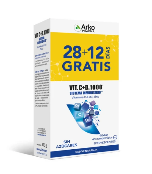 ARKOPHARMA VITAMINA C + D3 + ZINC 1000 40 COMPRIMIDOS EFERVESCENTES