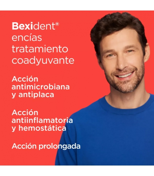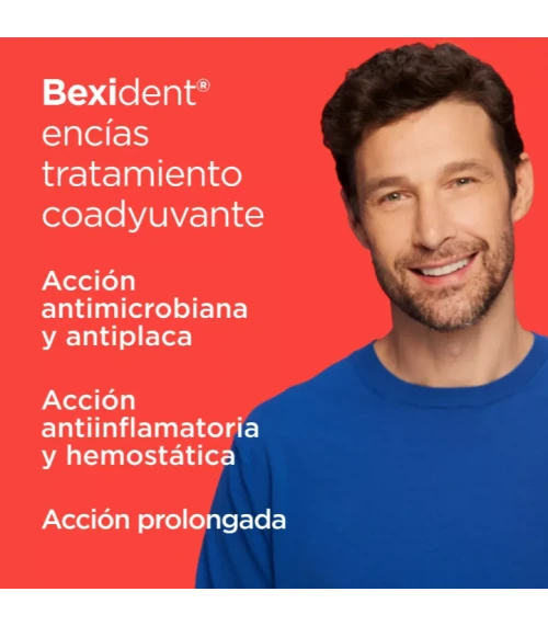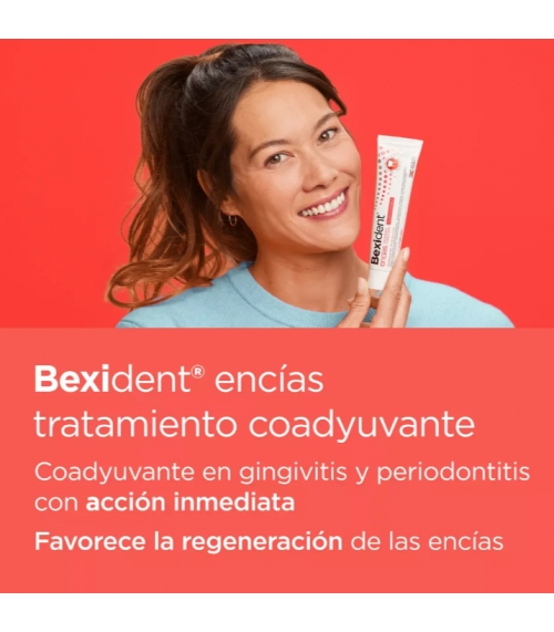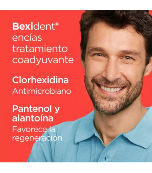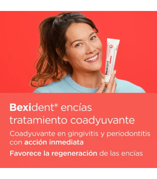 Bexident Encías Tratamiento Coadyuvante con clorhexidina es un gel dentífrico mucoadhesivo con tecnología PerioPlus Treatment Tech que aporta acción microbiana y antiplaca de manera inmediata y ayuda a reducir el sangrado y la inflamación en la gingivitis y periodontitis mejorando la salud de las encías.