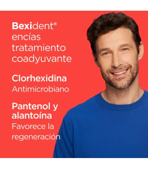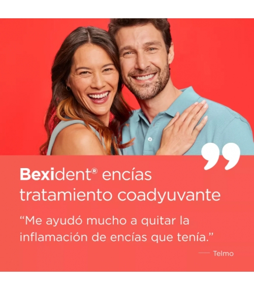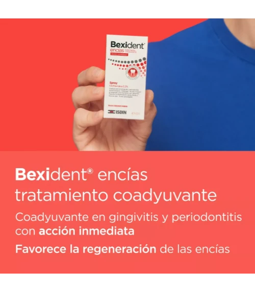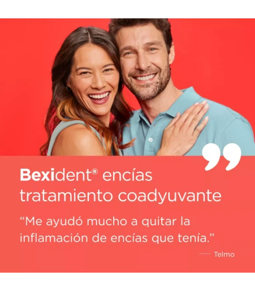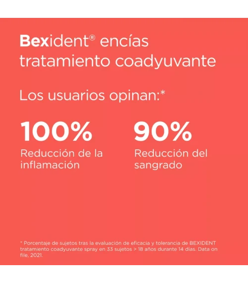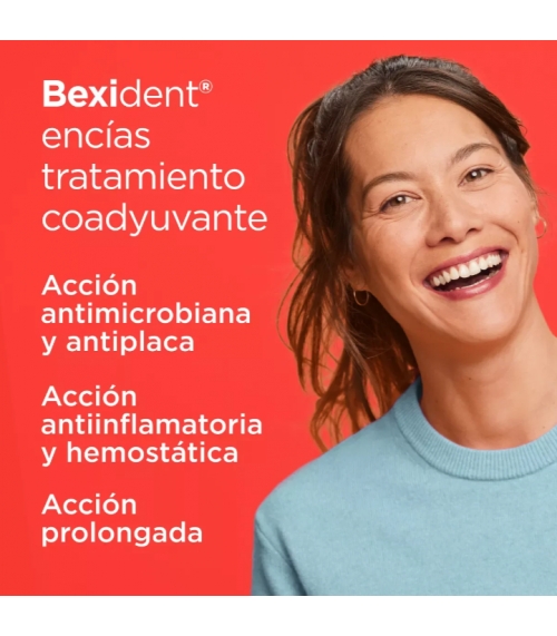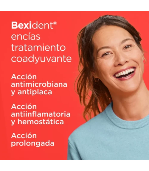 Bexident Encías Tratamiento Coadyuvante con clorhexidina es un spray mucoadhesivo con tecnología PerioPlus Treatment Tech que aporta acción microbiana y antiplaca de manera inmediata y ayuda a reducir el sangrado y la inflamación en la gingivitis y periodontitis mejorando la salud de las encías.