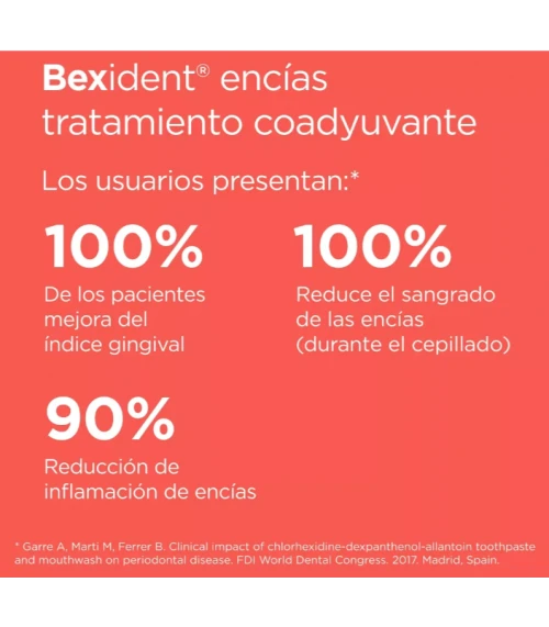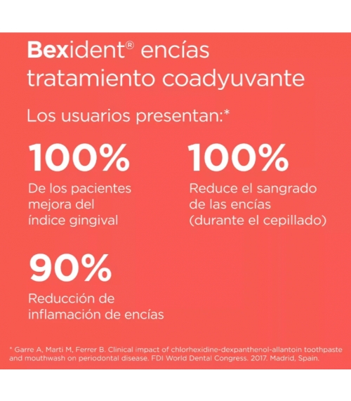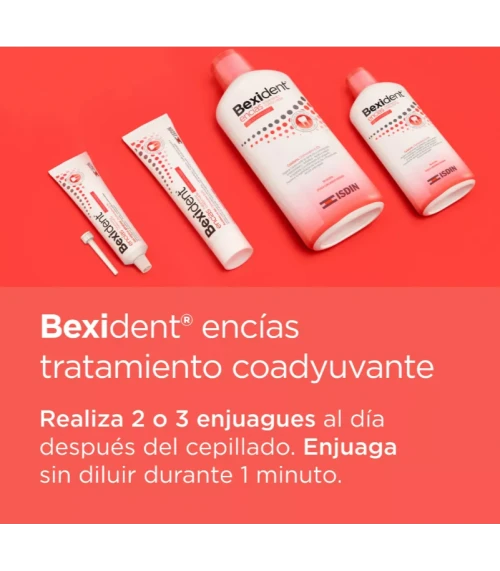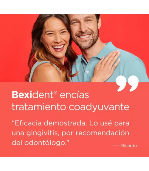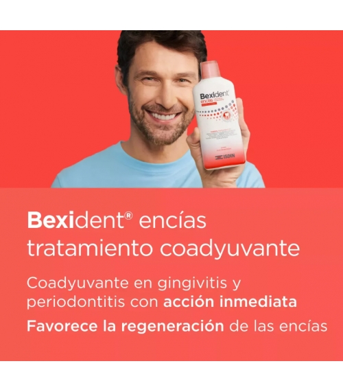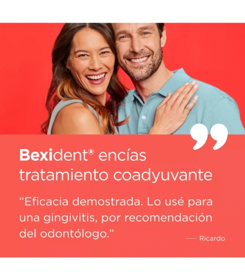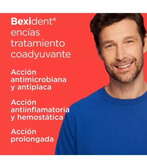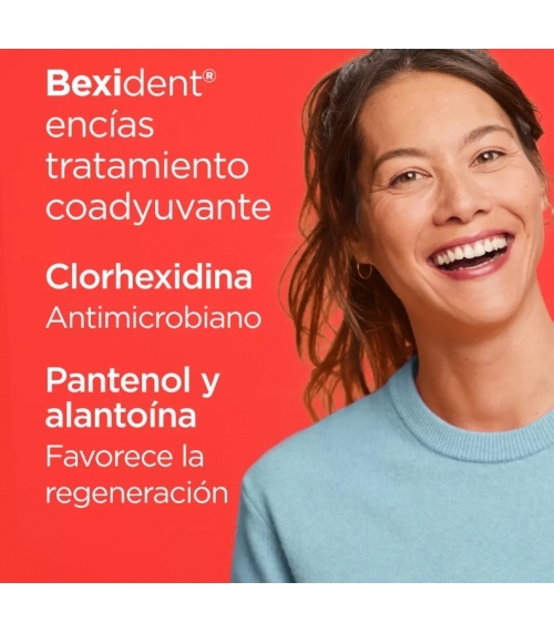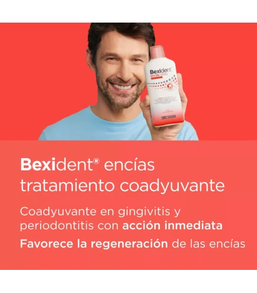 Bexident Encías Tratamiento Coadyuvante con clorhexidina es un colutorio mucoadhesivo con tecnología PerioPlus Treatment Tech que aporta acción microbiana y antiplaca de manera inmediata y ayuda a reducir el sangrado y la inflamación en la gingivitis y periodontitis mejorando la salud de las encías.