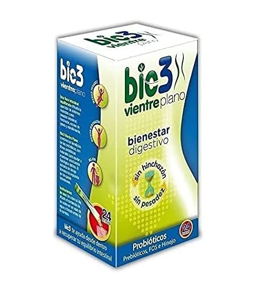 BIE3 Vientre Plano 24 Sticks Solubles es un complemento alimenticio diseñado para ayudarte a conseguir un abdomen más relajado y cómodo. Perfecto para quienes buscan un apoyo extra en su camino hacia una figura más estilizada, este producto contribuye al bienestar digestivo y la reducción de la hinchazón abdominal causada por la retención de líquidos.
