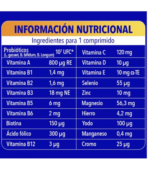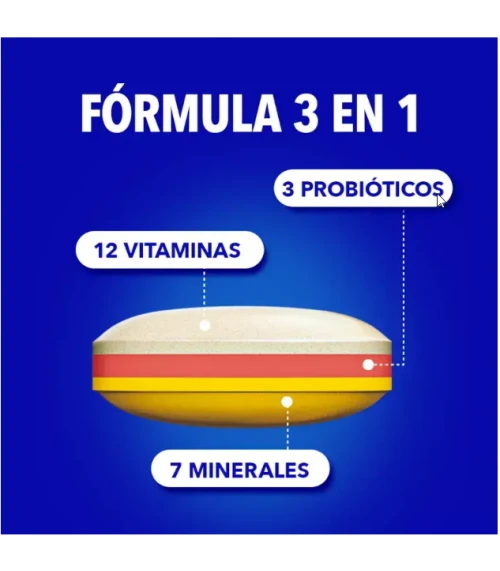 Mezcla de probióticos, vitaminas y minerales para ayudar al cuerpo a mantener un adecuado sistema defensivo.