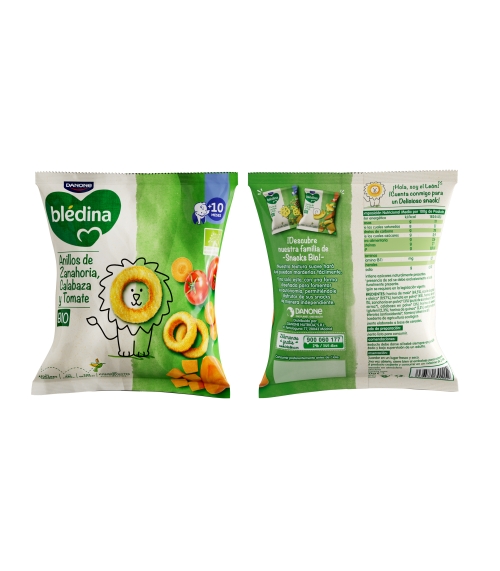 Bledina Bio Snack Anillos De Zanahoria Calabaza Y Tomate 20 G es un delicioso y nutritivo snack pensado especialmente para los más pequeños de la casa. Estos anillos están hechos a partir de ingredientes 100% orgánicos, como la zanahoria, calabaza y tomate, proporcionando un aporte nutricional balanceado que acompaña al crecimiento y desarrollo de tus hijos. Ideales para consumirse en cualquier momento del día, ofrecen una alternativa saludable y placentera a las meriendas convencionales. ¿Buscas un snack diferente y saludable para tu hijo? Este producto es perfecto.