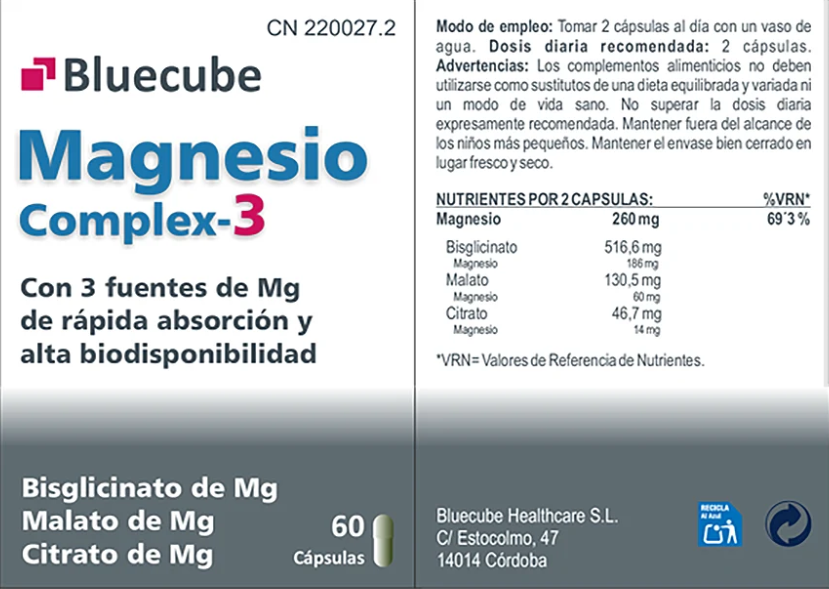 Opiniones de BLUECUBE MAGNESIO COMPLEX-3 60 CAPSULAS