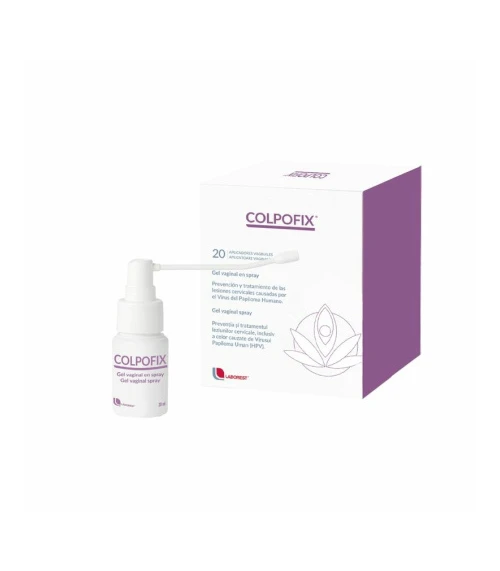 Es un gel que se aplica por medio de un spray en la mucosa del cuello del útero y, a base de alterar las condiciones físico-químicas de dicha mucosa, consigue prevenir las lesiones producidas por el VPH en esa zona. Si la lesión ya ha sido producida y está creciendo o es estable, Colpofix Gel Vaginal en Spray 2 frascos x 20 ml + 20 aplicadores ayuda a cerrarla y cicatrizarla.
