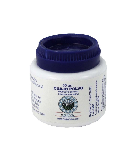 El Cuajo Nievi en polvo 50 g es un preparado enzimático diseñado para la coagulación de la leche en la producción de quesos y otros lácteos artesanales. Se trata de un producto elaborado a partir de enzimas coagulantes de origen animal, estabilizadas y deshidratadas, que permiten actuar de forma rápida y uniforme sobre la caseína de la leche. Gracias a su presentación en polvo, este cuajo ofrece una dosificación precisa y una manipulación sencilla, ideal tanto para pequeños elaboradores domésticos como para profesionales del sector quesero.
