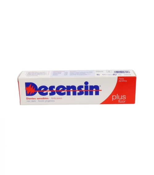 **Desensin Plus Fluor Pasta Dentífrica 125 ml** es un dentífrico especialmente diseñado para combatir la sensibilidad dental. Si experimentas dolor al consumir alimentos fríos, calientes o dulces, este producto te proporciona un alivio efectivo gracias a su contenido en fluor. Está indicado para el uso diario y ayuda a reforzar el esmalte dental, previniendo el deterioro y las caries.