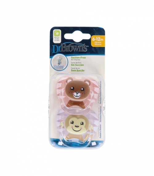 DR BROWN´S CHUPETE SILICONA SIN SUCCION ANIMALES ROSA 6-12 M T-2