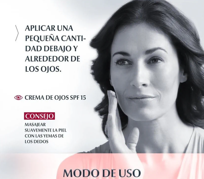 El uso regular de esta crema para ojos brinda múltiples beneficios. Mejora visiblemente la apariencia de arrugas y líneas finas, gracias a su potente combinación de ingredientes. La piel se siente más suave, flexible y rejuvenecida. Además, proporciona protección solar diaria con su FPS15, ayudando a prevenir el daño causado por los rayos UV y el envejecimiento prematuro. Su textura ligera se absorbe rápidamente, sin dejar residuos grasos.