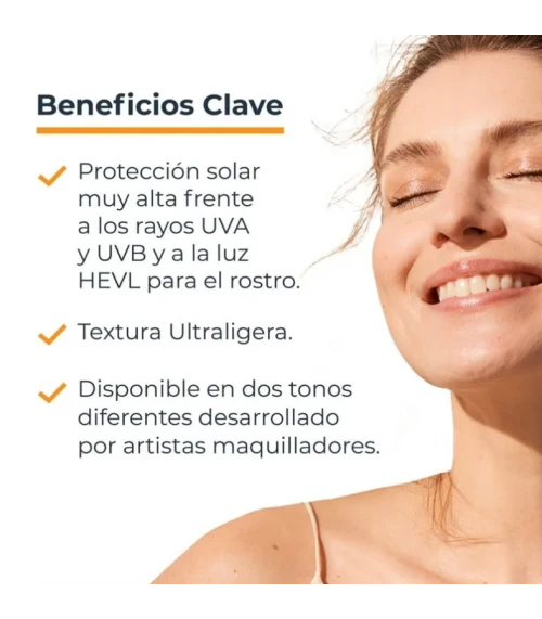 Proporciona alta protección solar diaria y un sutil tono claro mientras hidrata la piel sin dejar sensación grasa.