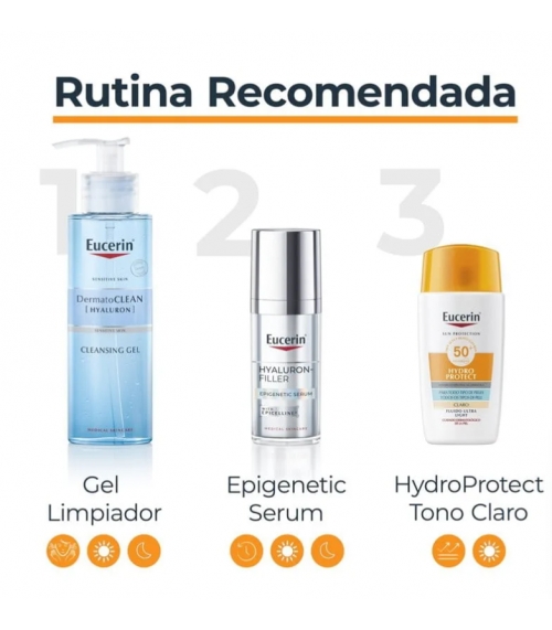 Aplica el Eucerin Sun Hydroprotect Fluido Ultra Light SPF50 50 ml Tono Claro en todo el rostro antes de la exposición al sol. Recomendamos masajear suavemente para asegurar una distribución uniforme. Reaplica cada dos horas y después de nadar o sudar para mantener la máxima protección.