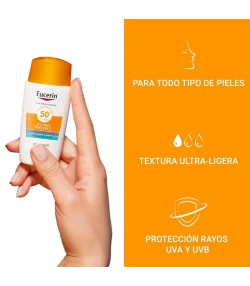 ¿Qué es y para qué sirve EUCERIN SUN HYDROPROTECT FLUIDO ULTRA LIGHT SPF50 50 ML TONO MEDIO?