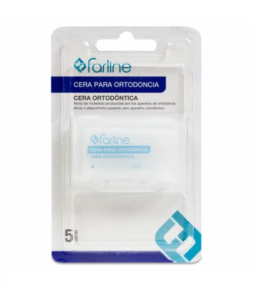 La Cera Ortodoncia Farline 5 Barritas viene en un conveniente estuche que alberga cinco barritas de cera, suficientes para un uso prolongado. Cada barrita ofrece múltiples aplicaciones, permitiéndote una protección continua contra los inconvenientes de la ortodoncia.