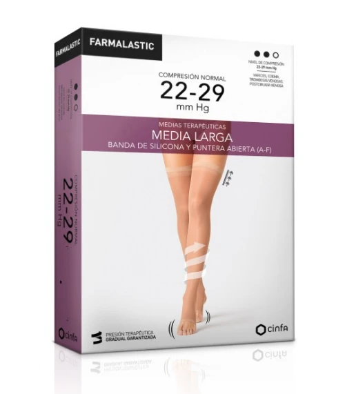 Compra las Farmalastic 2 Medias Largas Silicona (A-F) Comp. Normal Puntera Abierta T. Grande Color Negro en Farmacia Vizcaíno, nuestra farmacia online. Disfruta de envíos rápidos en 24/48h y envío gratis en pedidos superiores a 65€.