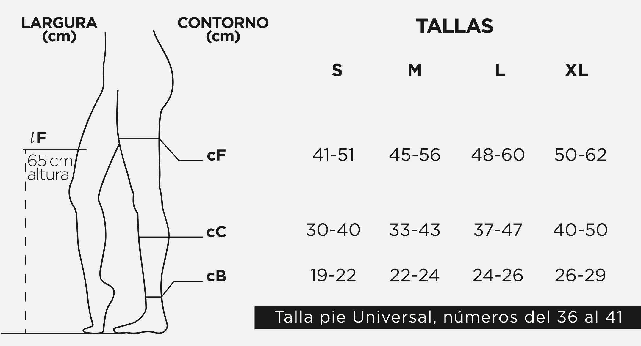Ante la duda, debe elegirse la talla menor. Si aún así tiene dudas, consúltenos en el 959550055 o en el 660356535 para que le aconsejemos. Las medidas tomadas a la pierna las transportamos a la siguiente tabla y así sabemos la que necesitamos: