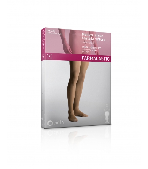 Son unas medias de compresión fuerte largas, que llegan hasta la cintura, para hombre, indicadas en el caso de problemas circulatorios en las piernas. Según la gravedad de la situación, lso problemas de retorno venoso se ordenan por alcance según la clasificación CEAP y Farmalastic Medias Hasta La Cintura Caballero Compresión Fuerte T-ExtraGrande están concebidas para una clasificación 4-5-6. Están indicadas para personas con problemas como: Estados consecutivos a una insuiciencia venosa o postrombótica. Fuerte tendencia al edema. Varicosis secundaria. Atrofia blanca. Dermatoesclerosis. Ulceraciones venosas. Tras la curación de úlceras, si han derivado. No deben usarla personas con enfermedades arteriales ni con alergias a los materiales que forman las medias.VENTAJAS Y CARACTERÍSTICAS