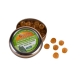 Miel, jalea real y própolis, de origen natural y en caramelos de goma. En una cajita metálica.