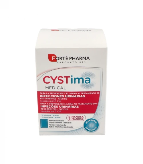 Forte Pharma Cystima Medical 30 Sobres es un complemento alimenticio diseñado para el bienestar del sistema urinario. Este producto se centra en prevenir y aliviar las molestias habituales de las vías urinarias. Su acción es rápida y eficaz, ofreciendo una comodidad diaria para aquellos que buscan mantener sus vías urinarias en perfecto estado.