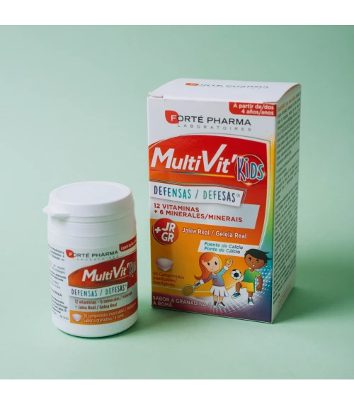 Multivit KIDS aporta 12 vitaminas + 6 minerales con Jalea Real para los niños a partir de los 4 años.