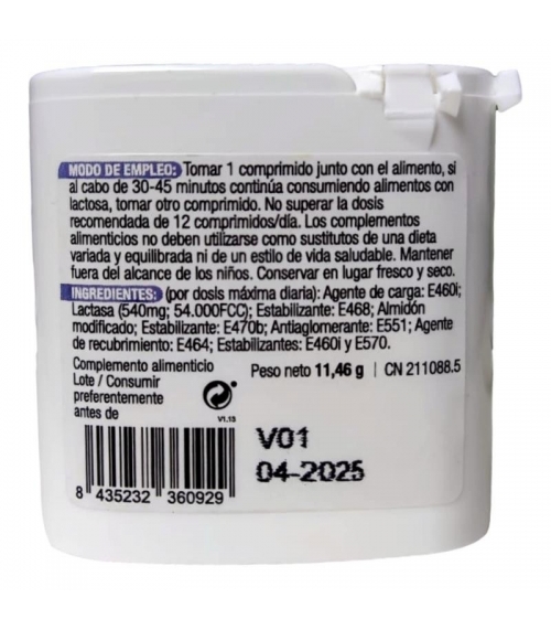 Es un complemento alimenticio que contiene la enzima lactasa en altas cantidades: 15000 FCC.