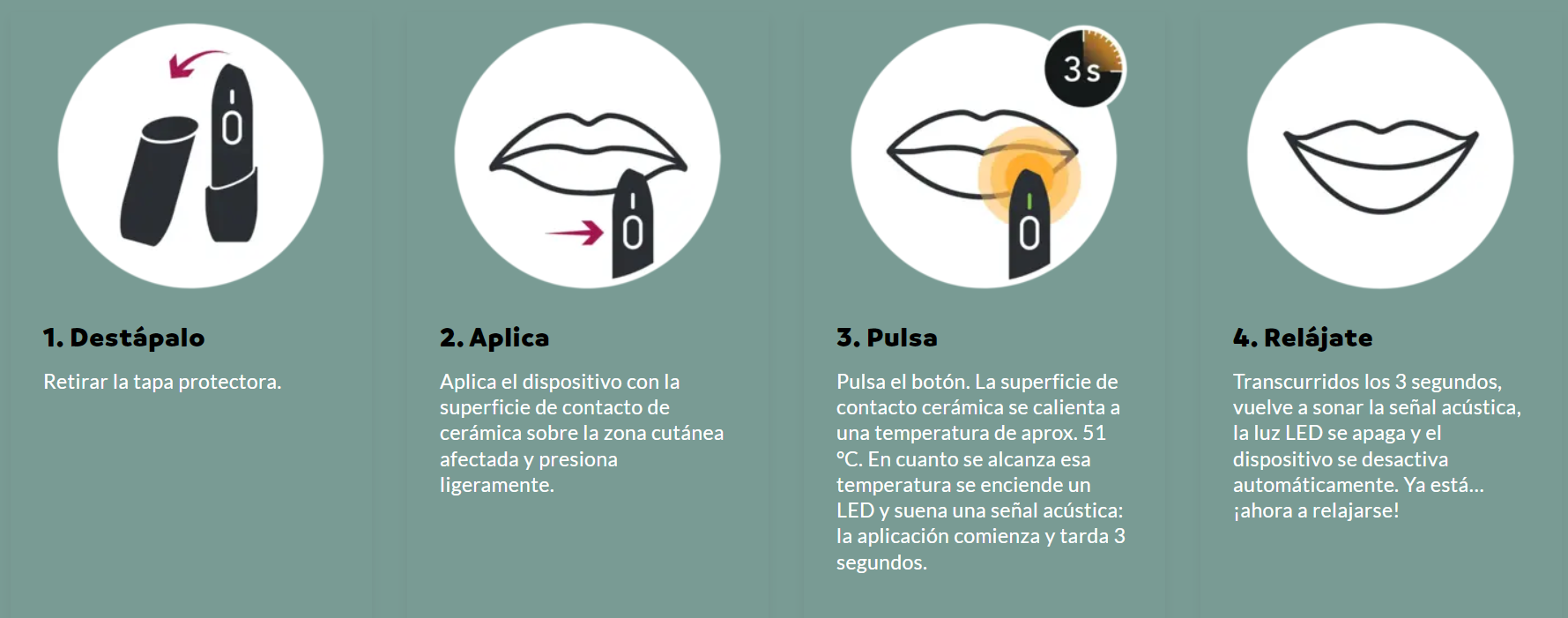 Alivia el herpes labial rápidamente con tecnología térmica, reduciendo síntomas desde el primer uso sin químicos adicionales.