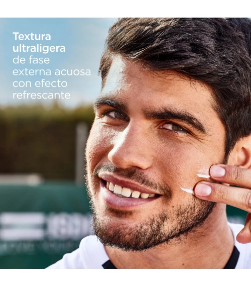 Protector solar facial con textura ultraligera y fase externa acuosa con efecto refrescante.