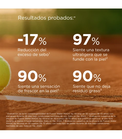 Su absorción es inmediata, resistente al sudor, no deja residuo graso, no comedogénico, mineral oil free, oil control, no irrita los ojos.