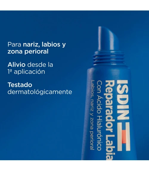FUNCIÓN Se trata de un fluido que protector y repara de forma intensiva los labios sensibles y agrietados, nariz y zona perioral. Ayuda a aliviar la irritación y sequedad desde la primera aplicación. Con ácido hialurónico, aceite de jojoba, extracto de granada y vitamina E. Es el que más se usa si no se usa el Isdin Labial Protector SPF30. MODO DE EMPLEO Aplicar tantas veces como sea necesario. Uso externo.