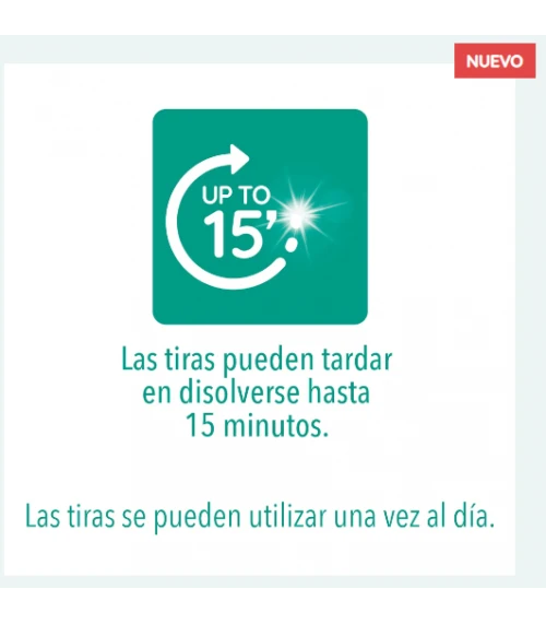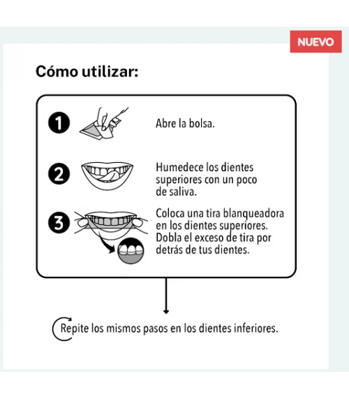 El producto se presenta en un práctico paquete con 28 tiras blanqueadoras, suficientes para un tratamiento completo de dos semanas. Cada tira está diseñada para un solo uso, asegurando así la máxima higiene y efectividad en cada aplicación.