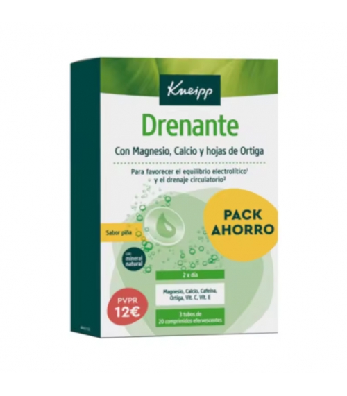 Kneipp Vitaminas Drenante 3 x 20 Comprimidos Efervescentes consigue que esa eliminación se haga de una forma controlada y que el equilibrio electrolítico no se desajuste, evitando efectos secundarios potencialmente graves.