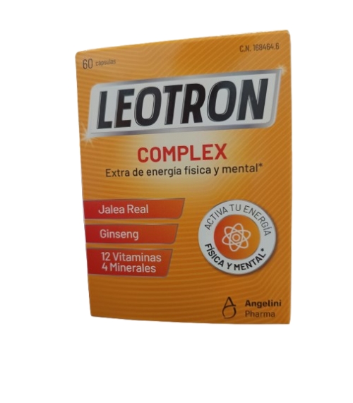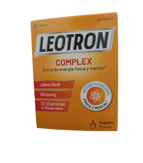 Leotron Complex de Angelini es un complemento alimenticio con jalea real, ginseng, 12 vitaminas y 4 minerales, que disminuyen el cansancio, la fatiga, ayudan al rendimiento intelectual normal...