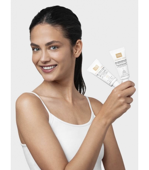 Protege la piel del sol mientras unifica el tono, reduce manchas y previene su aparición, dejando el cutis luminoso y uniforme.