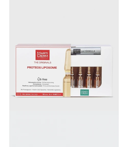 Compra Martiderm Proteos Liposome 2 ml 30 Ampollas en Farmacia Vizcaíno, tu farmacia online de confianza, con envíos en 24/48h y envío gratis desde 65€. ¡Mejora tu piel hoy mismo!