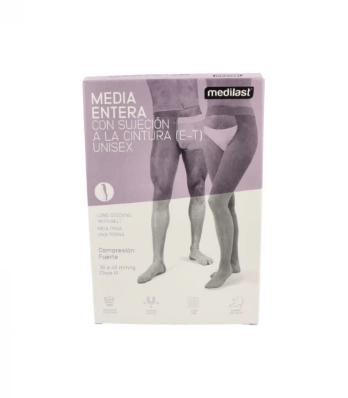 El Medilast Media E.T. Una Pierna Cintura Compresión Fuerte Derecha Talla Grande es un producto médico diseñado para ofrecer el máximo soporte y comodidad a personas que requieren compresión en la pierna derecha. Este dispositivo de compresión fuerte ayuda a mejorar la circulación sanguínea, aliviar el dolor y la fatiga, y prevenir problemas venosos como las varices y la hinchazón. Ideal para quienes trabajan de pie durante períodos prolongados o para aquellos que se recuperan de intervenciones quirúrgicas. Con su ajuste perfecto y su diseño específico, proporciona el soporte que necesitas justo donde lo precisas.