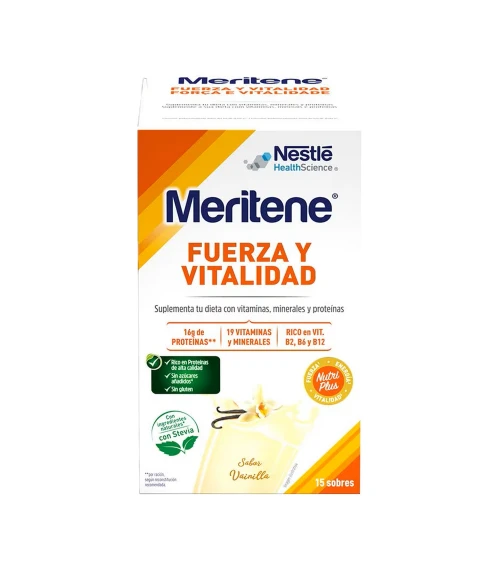 Compra Meritene Fuerza y Vitalidad Duplo 2 x 15 Sobres Sabor Vainilla en Farmacia Vizcaíno, en nuestra farmacia online, con envíos en 24/48h y envío gratis desde 65€.
