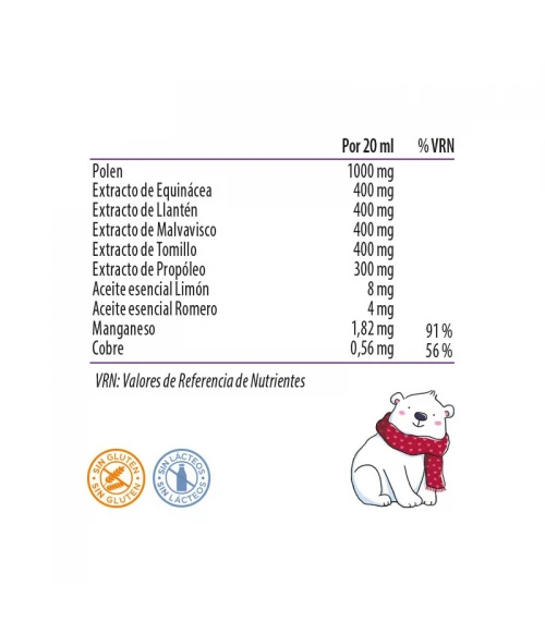 Solución infantil con ingredientes naturales y agradable sabor, a base de plantas, vitaminas, minerales y otros nutrientes.