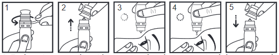 2. Quitar el tapón protector. No presione el frasco hasta que lo haya girado para colocarlo boca abajo.