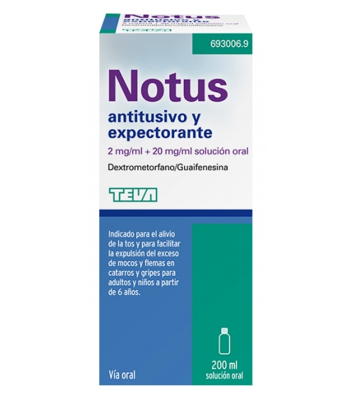 NOTUS ANTITUSIVO Y EXPECTORANTE 2 MG/ML + 20 MG/ML SOLUCION ORAL 1 FRASCO 200 ML