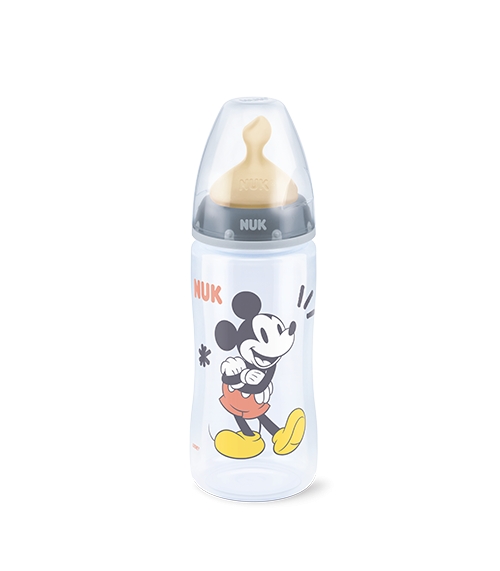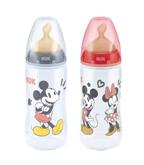 NUK FIRST CHOICE+ BIBERON MICKEY TETINA DE LATEX 0-6 M 300 ML ROSA / GRIS