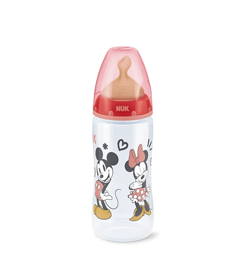 Para utilizar correctamente el NUK First Choice Biberón Mickey Tetina de Látex 0-6 m 300 ml Rosa / Gris, asegúrate de esterilizar todas las partes antes del primer uso y después de cada toma. Llena el biberón con la cantidad de líquido adecuada y coloca la tetina asegurándote de que esté bien sellada. Alimenta a tu bebé en una posición cómoda, inclinando el biberón para que la tetina siempre esté llena de líquido. Esto evita que el bebé ingiera aire, reduciendo las posibilidades de cólicos.