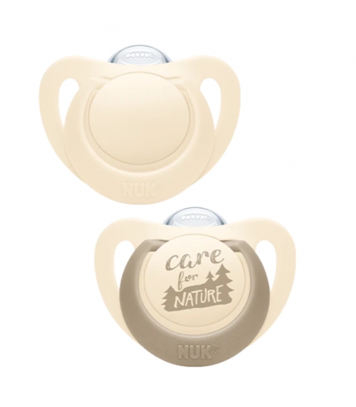 Es un pack que incluye dos chupetes de silicona para niños de 18-36 meses. La característica más reseñable de esta gama es el cuidado por la naturaleza que ha tenido Nuk en su fabricación.