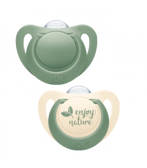 Es un pack que incluye dos chupetes de silicona para niños de 6-18 meses. La característica más reseñable de esta gama es el cuidado por la naturaleza que ha tenido Nuk en su fabricación.