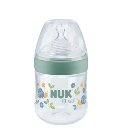 Es un biberón de Nuk fabricado de forma ecológica, para un menor impacto en el cambio climático. Incorpora las tetinas de la gama Nuk For Nature con distinto número de agujeros: las hay de 3 (S) y 6 (M) agujeros, siempre en el tamaño pequeño, el adecuado para entre 0 y 6 meses de edad. El biberón de la imagen es el pequeñito, de 150 ml, por lo que viene de serie con la tetina S. El otro más grande de esta gama, el Nuk For Nature Biberón Tetina de Silicona Talla L 260 ml, lleva la tetina con 6 orificios y mayor flujo, la M.