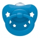 Es el clásico chupete de Nuk con la evolución lógica por el desarrollo que va añadiendo las mejoras que se van conociendo como al tetina más aplanada o los agujeros por los que fluye el aire y evita retención de líquidos junto a la piel de los labios que provoca irritaciones.