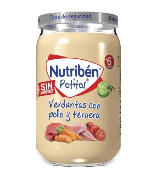**Nutriben Pollo Ternera Verdura Potito Grandote** es un alimento destinado a complementar la dieta de los más pequeños de la casa. Este potito se elabora con ingredientes 100% naturales, cuidadosamente seleccionados para ofrecer una opción nutritiva y sabrosa. Está pensado para bebés en crecimiento a partir de los seis meses de edad, proporcionando una comida equilibrada que incluye proteínas de carne de pollo y ternera, junto con verduras frescas que aportan vitaminas y minerales esenciales para su desarrollo óptimo. ¿Buscas una opción saludable y deliciosa para la alimentación de tu bebé?
